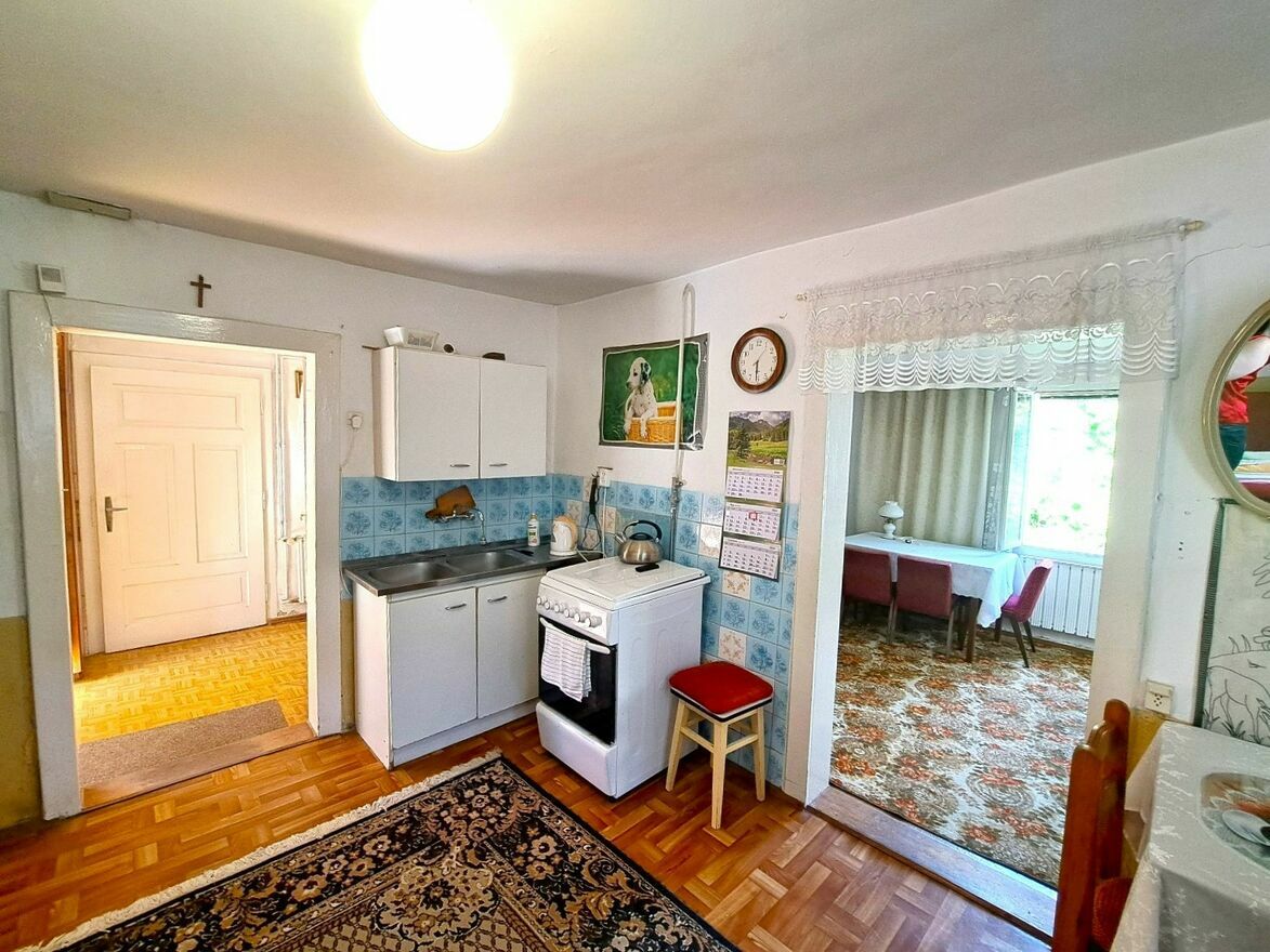 Na sprzedaż dom drewniany, o powierzchni zabudowy ok. 77 mkw., położony na dwóch działkach o łącznej powierzchni 9,92 ar w Sanoku, przy ulicy Kiczury, w dzielnicy Wójtostwo. Budynek z lat 30-tych XX wieku, jednokondygnacyjny, ze strychem nieużytkowym, częściowo podpiwniczony. Zbudowany z bala, oszalowany deską drewnianą, kryty dachówką. Dom wymaga gruntownej modernizacji, jednakże jego stan pozwala na zamieszkanie od zaraz.W budynku do dyspozycji mamy 3 pokoje, sień, kuchnię z jadalnią, łazienkę z wanną i WC oraz piwnicę. Okna oraz drzwi zewnętrzne i wewnętrzne starego typu. Media: prąd, gaz, wodociąg i kanalizacja miejskie. W łazience piec gazowy 2-funkcyjny marki Ariston. Jeden pokój, kuchnia z jadalnią, łazienka i korytarz posiadają centralne ogrzewanie. Pozostałe dwa pokoje ogrzewane są piecem kaflowym. Działka lekko pochyła, przylegająca do ulicy asfaltowej, z zagospodarowaną zielenią i miejscem parkingowym Na terenie posesji znajduje się budynek gospodarczy o powierzchni ok. 68 mkw., w stanie do wyburzenia lub remontu.