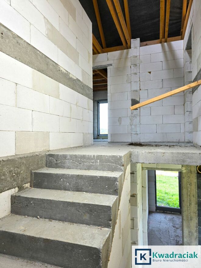 Budynek znajduje się w stanie zamkniętym - wyposażony w kompletne okna, drzwi wejściowe oraz drzwi garażowe. Dom został zaprojektowany z myślą o funkcjonalności i nowoczesnym stylu - jego sercem jest przestronny, pięknie przeszklony salon, który zapewnia mnóstwo naturalnego światła przez cały dzień. Dom do wykończenia to idealna propozycja dla osób, które chcą urządzić dom według własnych upodobań. Działka foremna, łatwa do zagospodarowania, częściowo otoczona tujami, co zapewnia kameralność i prywatność. To lokalizacja idealna dla osób ceniących prywatność i szybki dostęp do miasta.