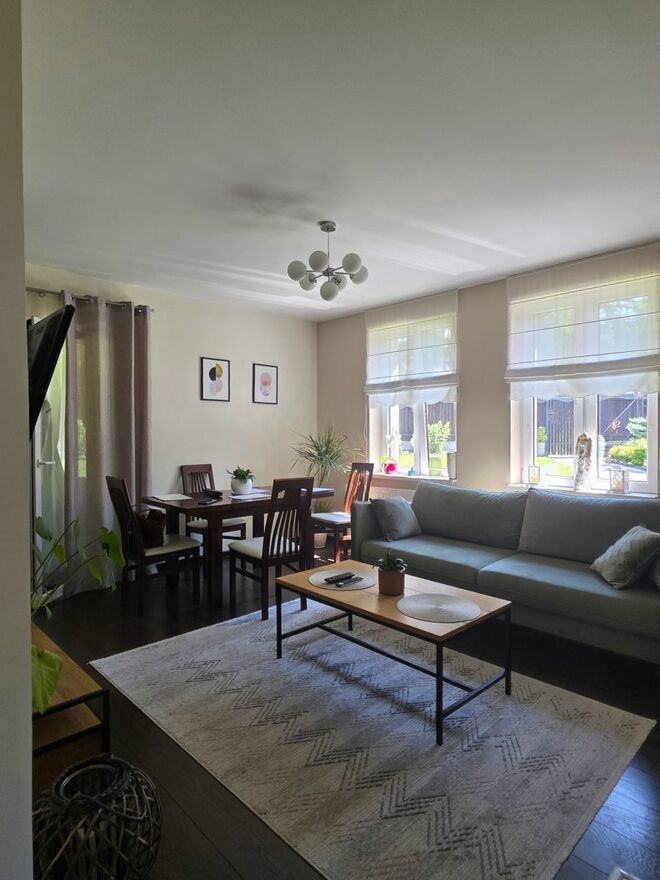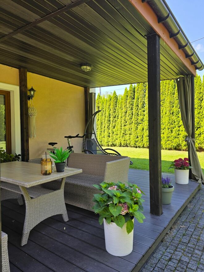 Bardzo zadbane przytulne wnętrze i układ pomieszczeń gwarantują poczucie wygody i komfortu. Zadaszony taras, idealne miejsce na poranną kawę. Brak bezpośredniego widoku na inne domy. Dom do zamieszkania bez wkładu własnego w świetnej lokalizacji. Idealny dla rodziny.