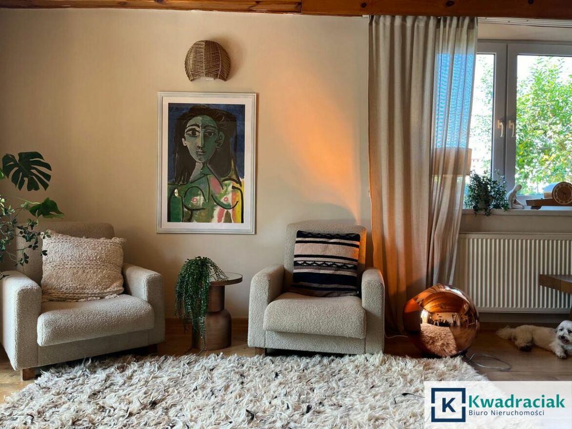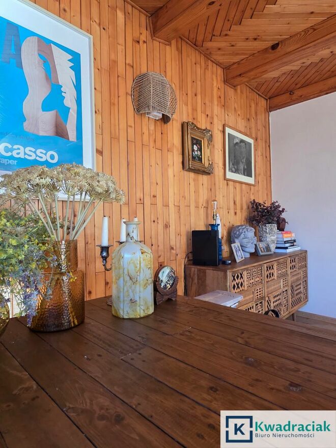 Jest to dom z charakterem i wyczuwalną historią miejsca - przestrzeń tworzona przez lata jako dom rodzinny i miejsce pracy twórczej. Naturalne materiały, drewno oraz spokojna kolorystyka wnętrz budują atmosferę ciepła i harmonii, która sprzyja codziennemu życiu. Dla osób poszukujących domu z duszą, w spokojnej lokalizacji z miłym sąsiedztwem.