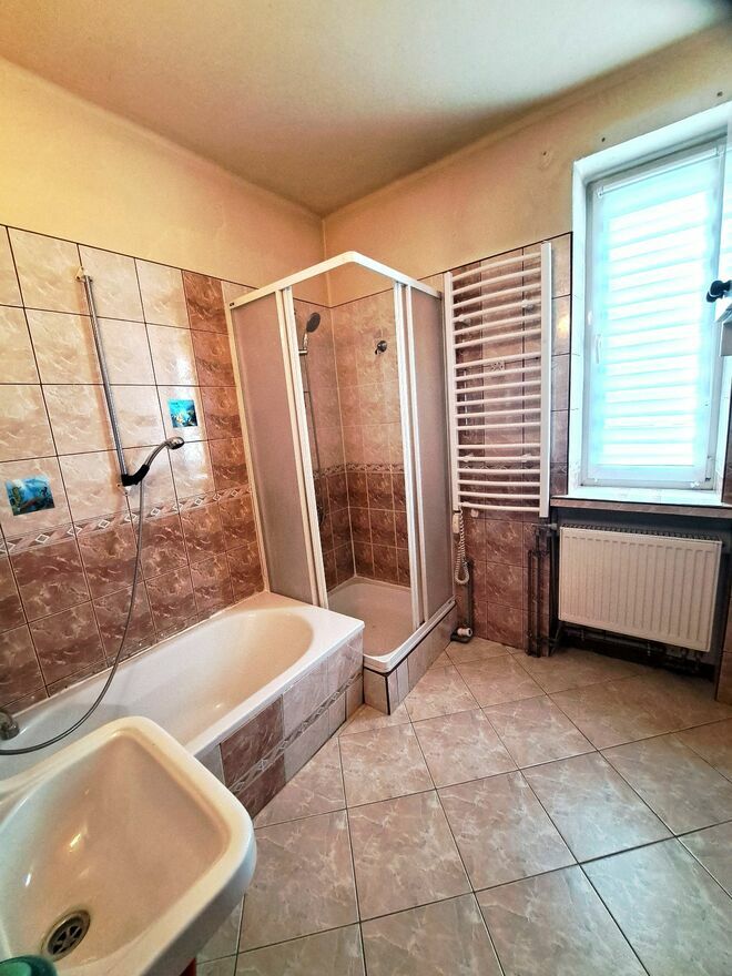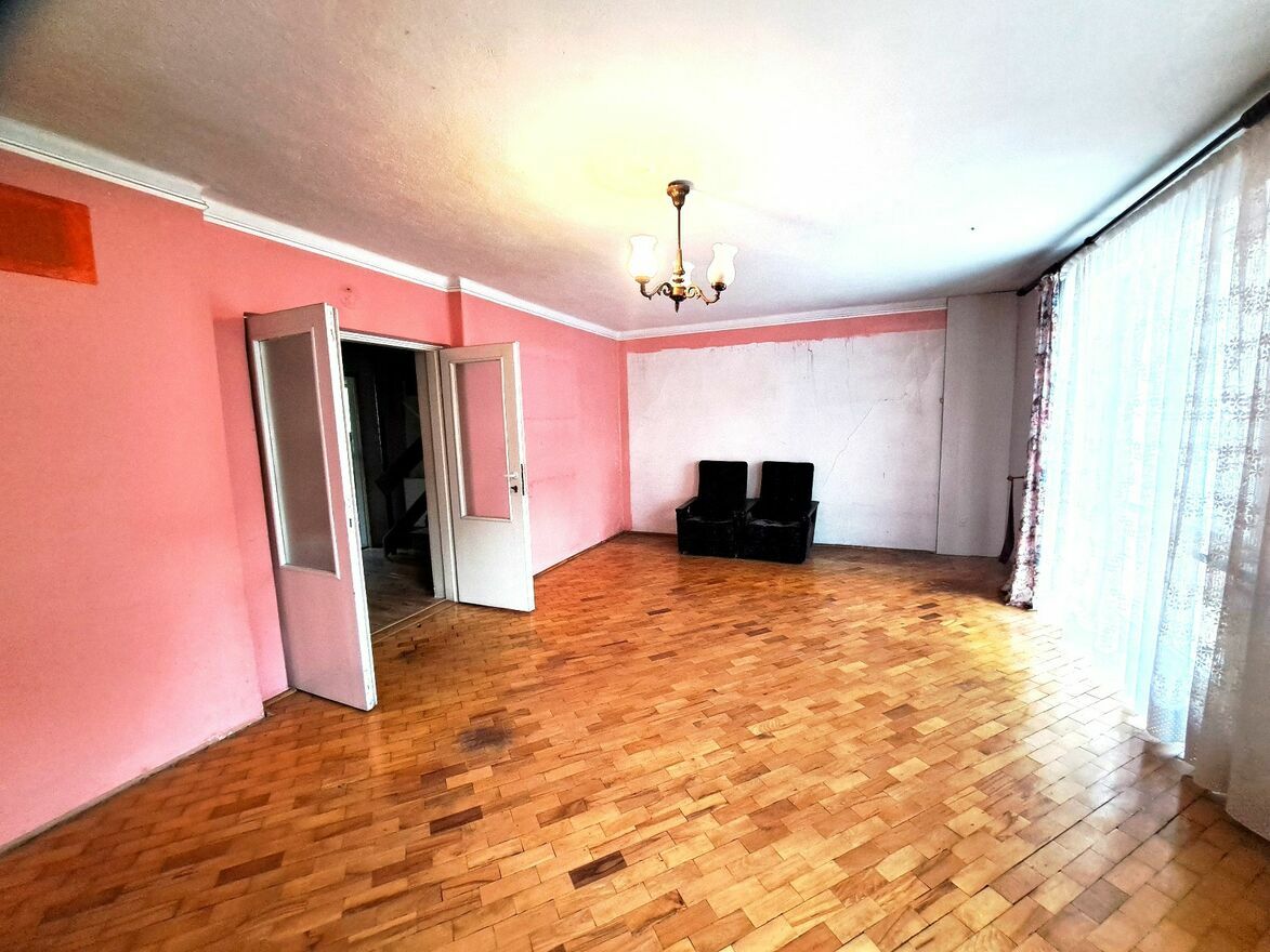 Na sprzedaż 6 pokojowy dom murowany z 1976 roku, położony na działce o powierzchni 5,28 ar w Sanoku, na osiedlu Wójtostwo, przy ulicy Wiśniowej. Budynek o powierzchni użytkowej 221 mkw., dwukondygnacyjny, z jednostanowiskowym garażem w bryle budynku. Działka płaska, ogrodzona, z utwardzonym podjazdem i dużym trawnikiem z tyłu budynku.Dom zbudowany z cegły i pustaka, podpiwniczony, ze stropem betonowym, kryty blachą. Na parterze salon, kuchnia, spiżarnia, łazienka z wanną i prysznicem, oddzielne WC, przedpokój, wiatrołap, garaż. Na piętrze 5 pokoi, WC, hol. Media: prąd, gaz, wodociąg i kanalizacja. Ogrzewanie: piec gazowy dwufunkcyjny Valliant. Okna PCV, na podłogach panele, parkiety, wykładzina dywanowa, drzwi wewnętrzne i zewnętrzne starego typu, na ścianach tynki i boazeria. Budynek do generalnego remontu.